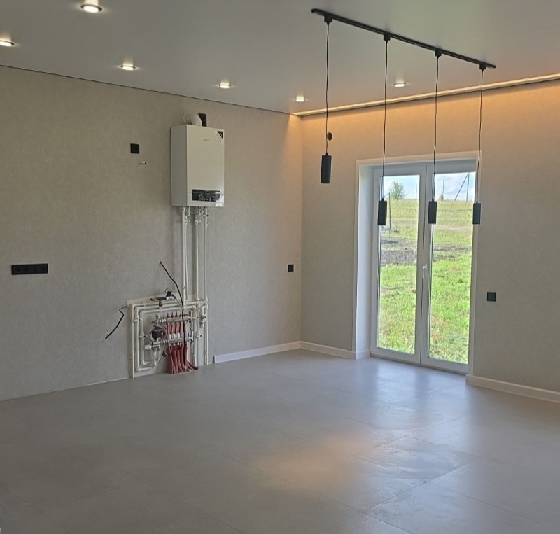 Дом панорамными окнами. Внутри расположена просторная кухня-гостиная с выходом на террасу. Железобетонный фундамент, стены из газобетона, кровля из металлочерепицы. В доме заведены все необходимые коммуникации. Есть возможность установить 2 санузла по вашему запросу.